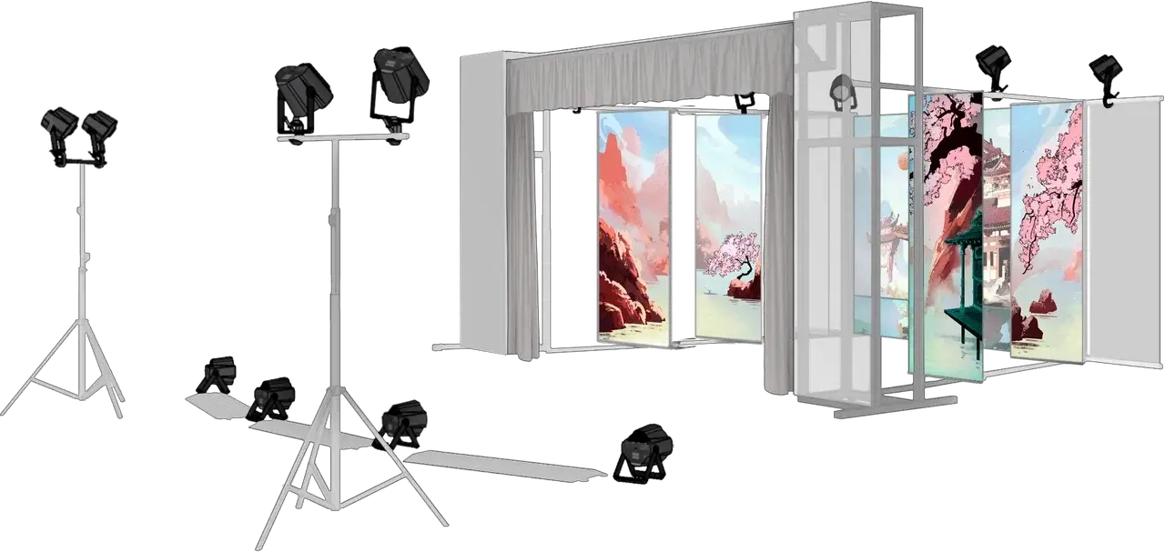 Cтартовый комплект оборудования Умного театра для постановки концертов, танцевальных шоу, оформления торжественных мероприятий, требующих трансформации пространства. Предусматривает использование типового видеоэкрана, проектора и звукового оборудования, имеющегося у заказчика.
